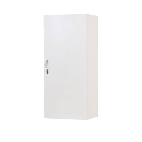 Egy ajtós fali szekrény, magasfényű fehér színben.