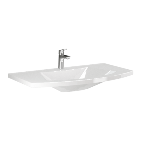 Fehér színű kerámia mosdó Sole bútorcsaládhoz, mérete 82x17x49 cm.
