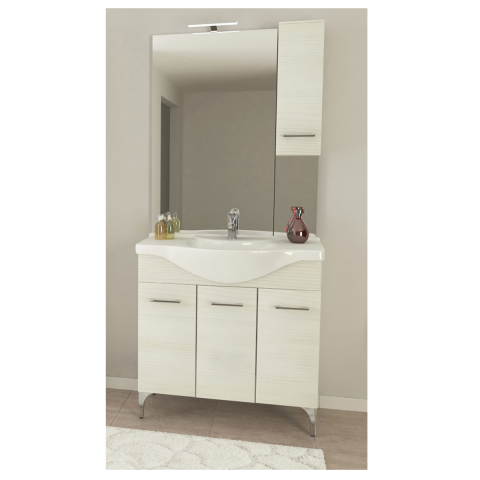 Fürdőszobabútor Rubino 85 - 87.5X87X50.5CM - fehér tölgy színben - alsószekrény 85 cm széles mosdóval, három ajtóval Csaptelep, tükör, oldalszekrény és dekoráció nélkül!
