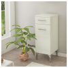Jobbos alacsony szekrény fehér színben, 31,5x88x33,5 cm-es méretben, 1 ajtós és 1 fiókos kivitelben.
