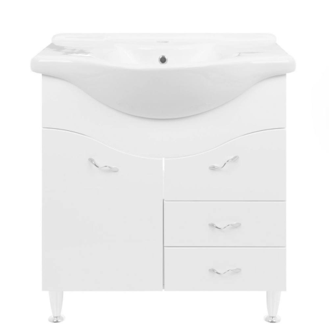 Ez a szerelvény szélessége 75 cm, magassága 86 cm és mélysége 46 cm, elég tágas a kényelmes használathoz. A bútor a padlón helyezkedik el. Mindkét anyag, forgácslemez és MDF kombinációja biztosítja a hosszú használat és a nedvesség és gőz ellenállóké