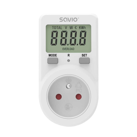 Savio Wattmeter SAVIO LCD AE-02 dugalj fogyasztásmérővel - Fehér (SAVAE-02)
