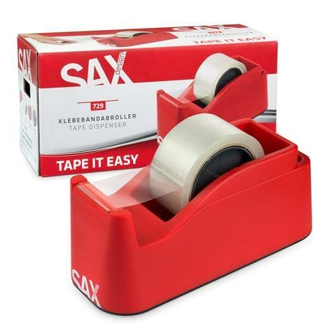Csomagolószalag adagoló, asztali, csomagolószalaggal, SAX 729, piros (ISA729) A SAX 729 asztali adagoló a raktári munka, csomagolási folyamatok során, valamint a mindennapi életben egyaránt megállja a helyét. -1 db max. 50 mm vagy 2 db 25 mm széles cs