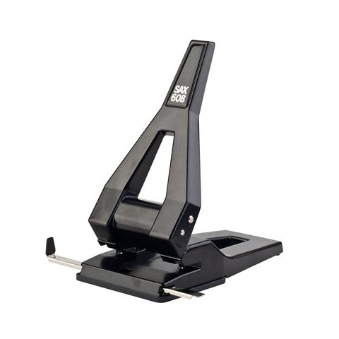 Lyukasztó, nagyteljesítményű, kétlyukú, 65 lap, SAX 608, fekete - könnyűfém test - karos lyukasztó - fém távtartó - a lyukasztóbélyeg mechanikájának köszönhetően 25% -kal kevesebb erőkifejtés szükséges a lapok átlyukasztásához - lyuktávolság: 80 mm - l