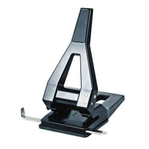 Irodai, asztali, színes fémvázas lyukasztó, távtartóval, papírhulladék tartóval ellátva, 65 lap lyukasztási kapacitással. 25%-kal kevesebb erőkifejtés szükséges a lapok átlyukasztásához.