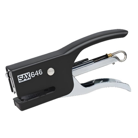 Tűzőgép SAX 646 15 lap 10/5 fekete Fémtestű fűzőgép,hátul tölthető, tűző-fűző funkcióval, fekete, piros és kék színben. Egyszerre összefűzhető lapok száma: 15 lap. Használható kapocsméret: 10/5.