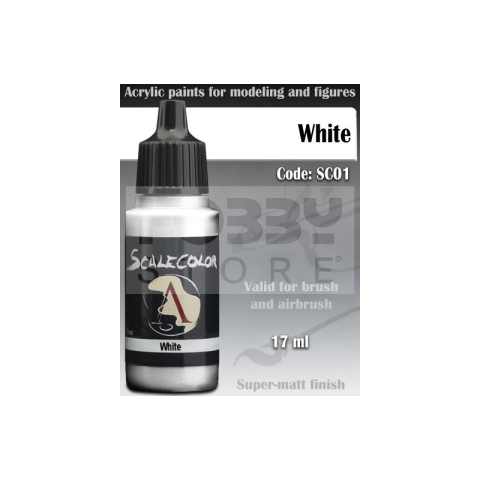 Scale75 - SCALECOLOR Range - WHITE akrilfesték 17ml SC-01 Akrilfesték modellezőknek és wargamesek számára. Magas pigment tartalmú rendkívül jól fedő és használahtó ultra mattra száradó festék. A Scale75 Scalecolor széria elsősorban figura festők és társa