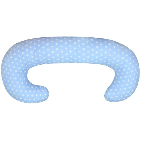Szoptatós párna - alvásra alkalmas, C betű alakú, hipoallergén, pozicionálható, mosható huzat, pamut bevonó anyag, üreges szál töltőanyag, átmérője 16 cm, csillagos motívum, fehér és kék kivitel, tömege 1700 g A kitűnő Scamp C betű alakú szoptató párna puha és könnyed, mert üreges szállal van töltve. Légáteresztő, finom pamut anyaga friss és kényelmes érzést biztosít, még hosszan tartó használat közben is.