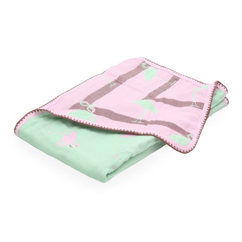 1 kép Scamp hatrétegű takaró 75*100cm zöld-rózsaszín flamingó