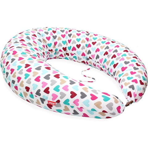 Szoptatós párna - alvásra alkalmas, henger alakú, hipoallergén, pozicionálható, mosható huzat, pamut bevonó anyag, üreges szál töltőanyag, szíves motívum, többszínű, tömege 1300 g A klassz Scamp henger formájú szoptatóspárna hosszú élettartamú, puha és könnyű üreges szállal van töltve. Puha, pamut anyaga finoman simul a bőrhöz, és ideális választás érzékeny bőrűek számára is. A
