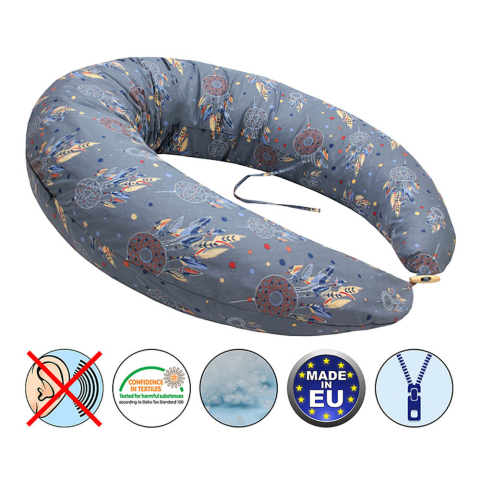 szoptatós párna A Scamp XXL formázott kifli alakú szoptatós párna több funkcióval bír. Hatékony segítséget nyújt a várandósság idején, lehetővé teszi, hogy a legkényelmesebb pozíciót tudja felvenni a kismama: alvásnál, pihenésnél megtámasztja a derekat