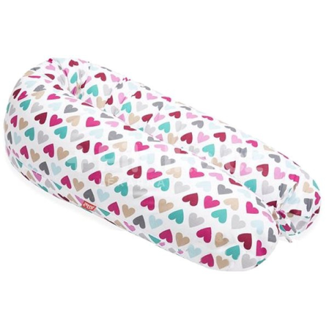 Szoptatós párna - patkó alakú, hipoallergén, pozicionálható, mosható huzat, pamut bevonó anyag, poliészter töltőanyag, mérete 30 × 160 cm (Sz×H), szíves motívum, többszínű, tömege 1200 g Szoptatás közben különösen fontos az anya és a gyermek kényelme. A Scamp szoptatós párna pontosan ezt a kényelmet biztosítja. A Scamp párna könnyen alakítható, így igazodik egyéni igényeidhez. Emellet