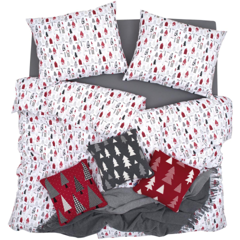 1 kép Scanquilt KLASIK ágyneműhuzat, sarkvidéki házikók, piros-fehér, 140 × 200/70 × 90 cm (36594)