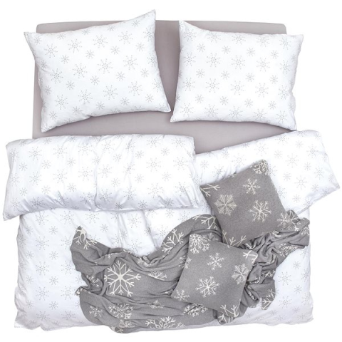 Scanquilt SATÉN PLUS ágyneműhuzat, hópelyhek, fehér-szürke 140 × 200/70 × 90 cm lakástextília termékleírás