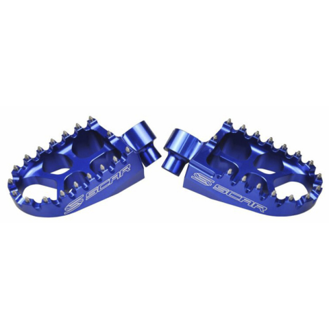A Scar lábtartókat versenycsapatokkal együtt fejlesztették ki. Numerikus vezérléssel készülnek alumíniumból, amelyet a repülésben használnak, így 40%-kal könnyebbek és 20%-kal erősebbek, mint a standard gyári lábtartók. Kivételes tapadás acél hegyekkel (bejegyzett design) 18 betét rozsdamentes acélból: strapabíróság, hosszú élettartam és maximális tapadás 57mm széles (+ 10mm a standard lábtartókhoz képest) Ideális extrém körülmények között, mint péld