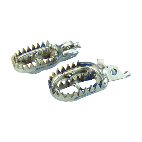 Az Scar lábtartókat versenycsapatokkal együtt fejlesztették ki. Aeronautikai típusú titánból készültek, ami rendkívül könnyűvé teszi őket, kb. 400g/pár. A lábtartók 57mm szélesek (+10mm a standard lábtartókhoz képest), és 18 fogazatuk van a nagyobb szilárdság és jobb tapadás érdekében. Ideálisak szélsőséges körülmények között, például homokban, sárban stb. A Scar lábtartók kiváló választásnak bizonyulnak minden olyan motoros számára, aki extrém