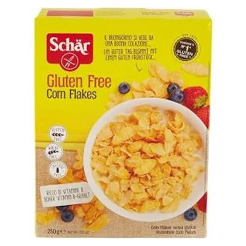 Schär gluténmentes corn flakes kukoricapehely 250 g Egy finom, ropogós napkezdés! Hagyományos és egyben tápláló reggeli: zsírszegény, magas B-vitamin tartalmú, emellett pedig vas-, magnézium- és cinkforrás! Összetevők: kukorica , cukor , só , emulge