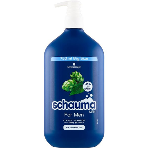 Sampon férfiak számára - hagyományos sampon, minden hajtípusra ajánlott, dúsító hatás, szilikonmentes, 750 ml-es kiszerelésben, vegán kozmetikum A Schauma sampon férfiaknak a hajtövektől a hajvégekig erősíti a hajat, miközben a természetesnek tűnő volumenért táplálja a haj szerkezetét. A rendszeres hajmosás a hagyományos férfi samponnal biztos