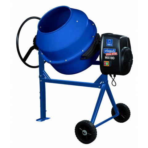 A Scheppach MIX180 betonkeverő gép magasan túllép a hobbi gépek kategóriáján, paramétereivel és műszaki megoldásaival megközelíti a jóval drágább professzionális gépeket. A gép alapja a nagy, 180 literes keverődob, melynek nagysága megfelelő a professzion