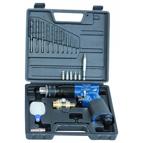 Tartozékok: 10 x HSS fúró, 6 x CrV bit fúró, 1 x bit tartó, zsírzógomb, olaj, tokmány, gyorscsatlakozó levegőolajozó