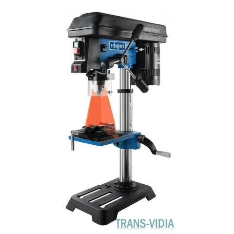 A Scheppach DP 16 SL kiválóan felszerelt, állványos fúrógép az igényes barkácsolók és műhelyek számára. Az alapvető különbség a többi hasonló géphez képest a központosító lézerfény kivetítésének lehetősége, amely előjelöli a fúrás pontos helyét, megkönnyíti azt, így felgyorsítja a nagyobb darabszámú munkadarabok megmunkálási idejét. A gép masszív, öntvényből készült konstrukció