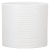A Scheurich 828 kaspó kerámiából készült. A hengeres testen szabályos, apró harántbarázdák láthatók, melynek köszönhetően a kaspó bármilyen szögből élettelinek látszik. Átmérője: 12 cm, színe: fehér