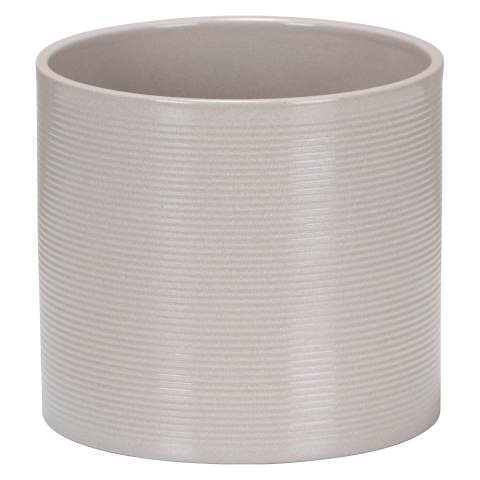A Scheurich 828 kaspó kerámiából készült. A hengeres testen szabályos, apró harántbarázdák láthatók, melynek köszönhetően a kaspó bármilyen szögből élettelinek látszik. Átmérője: 14 cm, színe: krém/bézs