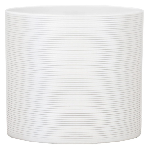 A Scheurich 828 kaspó kerámiából készült. A hengeres testen szabályos, apró harántbarázdák láthatók, melynek köszönhetően a kaspó bármilyen szögből élettelinek látszik. Átmérője: 16 cm, színe: fehér