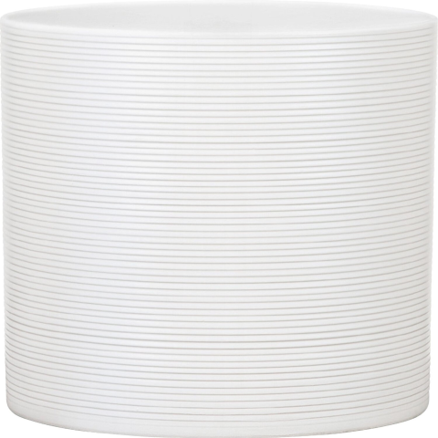 A Scheurich 828 kaspó kerámiából készült. A hengeres testen szabályos, apró harántbarázdák láthatók, melynek köszönhetően a kaspó bármilyen szögből élettelinek látszik. Átmérője: 19 cm, színe: fehér