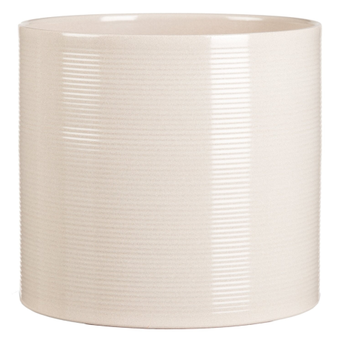 A Scheurich 828 kaspó kerámiából készült. A hengeres testen szabályos, apró harántbarázdák láthatók, melynek köszönhetően a kaspó bármilyen szögből élettelinek látszik. Átmérője: 19 cm, színe: krém/bézs