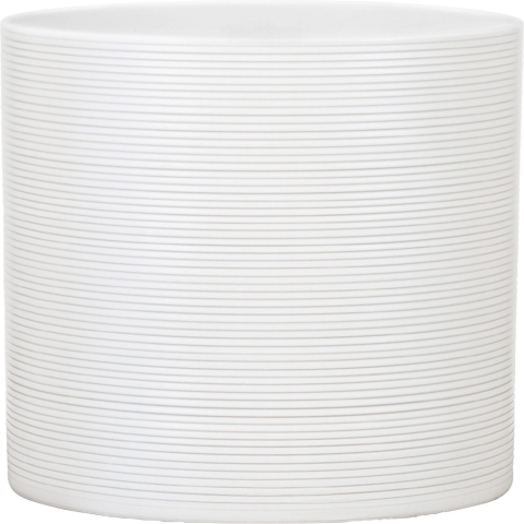 A Scheurich 828 kaspó kerámiából készült. A hengeres testen szabályos, apró harántbarázdák láthatók, melynek köszönhetően a kaspó bármilyen szögből élettelinek látszik. Átmérője: 23 cm, színe: krém