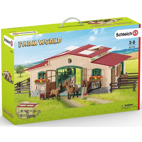 Egy lovardát vezetni, és megfelelő ellátást biztosítani a lovak számára nem egyszerű dolog. A Schleich játékszett azonban remekül felkészít minderre. Minden részletében hű utánzata az igazi pajtának, azonban rendelkezik egy hatalmas előnnyel - ez a lo