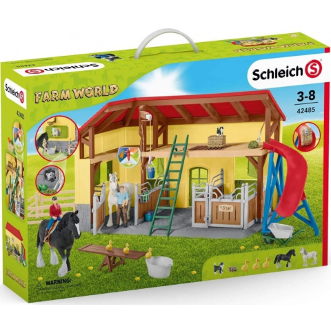 Az új színes Schleich lóistálló számos nagyszerű játékfunkciót kínál, és a kicsik számára biztosítja a hosszú távú szórakozást! A szett tartalmaz 7 aranyos állatot, 2 lóboxot, Paul és Laura gazdát, valamint rengeteg kiegészítőt, amikkel a gazdaság m