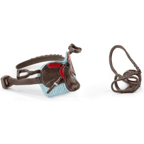 A lovas kiegészítő készlet tartalmaz: nyerget és kantárt. A kiegészítők szinte az összes Schleich lóhoz és figurához használhatók.