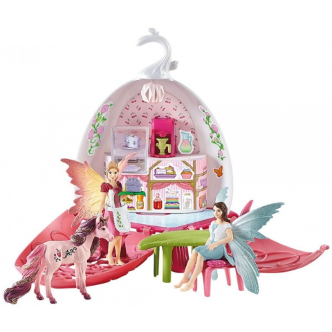 A Schleich tündérkávézóban minden megtalálható, amire szükség van egy kellemes kis délutáni kávézáshoz. Amikor Eyela és Feya kinyitják a kávézót tartalmazó virágot, Feya első dolga az, hogy felvegye a kötényt, és a pulton lévő kávéfőzővel friss kávét főzz