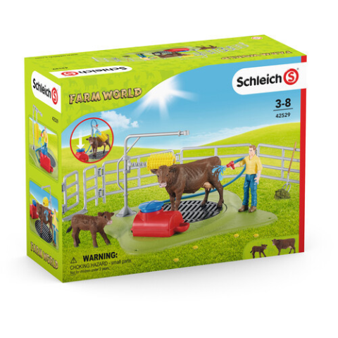 Ma fürdési idő van! Az új tehénmosó állomáson nagy a nyüzsgés. A tehenek bejönnek a legelőről, és mielőtt visszamennek az istállóba, meg kell mosakodniuk. Különösen a kis borjú nagyon feszült. Ma van először az anyjával együtt a medencében. Martin gazda megnyomta a szivattyút, és minden készen áll. Micsoda móka! A kis borjú a forgóasztalon áll, és minden oldalról meg lehet tisztítani. Martin lezuhanyozza a teheneket, majd kefével masszírozza őket. A j