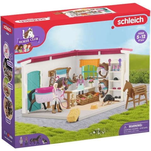 A Schleich lovasbolt játékkészletében minden megtalálható, amire a lovas és a ló szíve vágyik – nyergek, kötőfékek, kantárok és még sok más. Szükséged van takarmányra és egyéb csemegére? A lovasboltban megtalálod, amit keresel. Ha pedig valaminek nem
