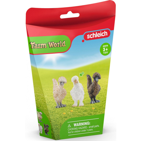 Itt vannak a tyúkbarátok! Ez a három tollas barát belép a Schleich világába. A trió két különböző lengyel csirkéből és egy selyemtyúkból áll. Induljon a kapirgálás!