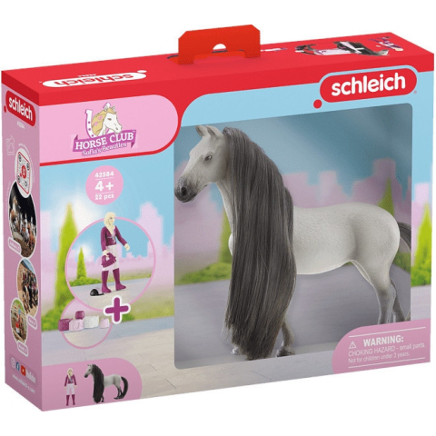 A Schleich Sofia's Beauties termékcsalád részeként megérkezett Sofia és Dusty, Trakehner fajtájú lova. Ez a páros igazi szenzáció a lovasbemutatón. Dusty fésülhető sörénye és farka a készletben lévő kiegészítőkkel (csatok, gyöngyök, díszek) szabadon d