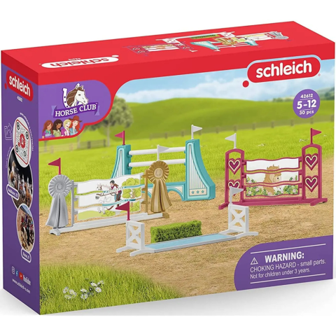 Ha meg akarod nyerni a tornát, minden akadályt le kell küzdened a lovaddal. A Schleich díjugrató pálya négy különféle akadálya különösen megterhelő lónak és lovasnak egyaránt. Az akadályok szabadon alakíthatók.