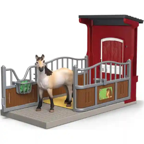 A doboz élénkpiros színben készült, ami vidám és energikus megjelenést kölcsönöz neki. A doboz elején lévő táblán még van egy hely, ahová felírhatod az új lovad nevét. Ez a doboz remek kiegészítő mindenkinek, aki szereti a lovakat, és tökéletes pihenőhelyet szeretne biztosítani figuráinak.A csomag a következőket tartalmazza: 1× pónidoboz 1× mustang kanca 1× zöld alma 1× állvány Ez a Schleich® termék a FARM WORLD tematikus világhoz tartozik, és 3