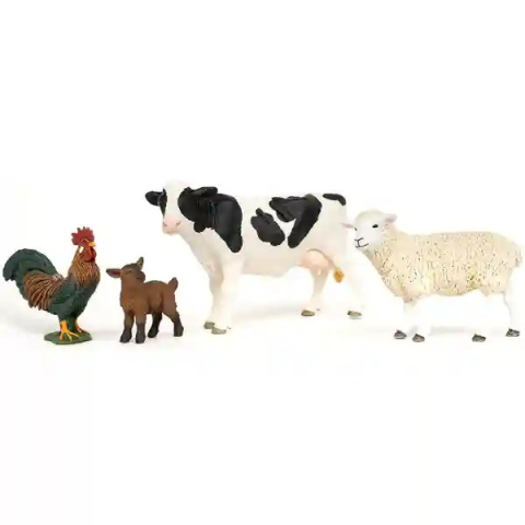 A Schleich Farm World 42729 A farm állatai válogatás készlet 4 Schleich figurát tartalmaz: szarvasmarha tehén, kakas, bárány és kecskegida. A figurák autentikus részletekkel rendelkeznek, szeretettel festettek, és elősegítik az oktatási szempontból értéke