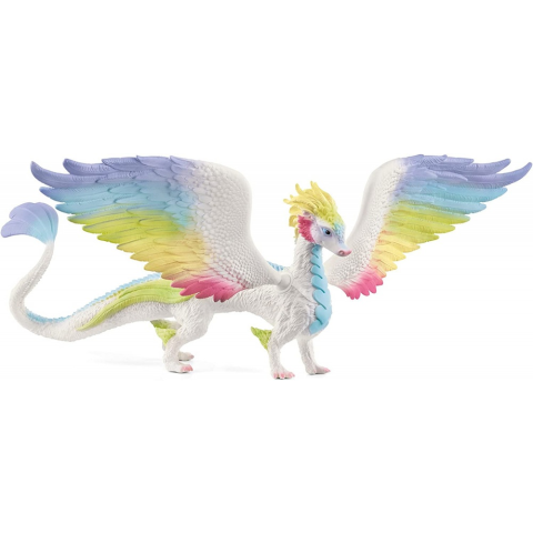 A szivárványsárkány bámulatos színeivel ámulatba ejti Bayala lakóit és a gyerekeket is. A sárkány szárnyai a gömbcsuklókon keresztül minden irányba mozgathatók. A sárkány mérete 25 x 30,2 x 13,3 cm