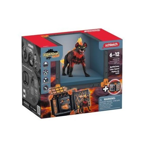 Láva hiéna harci pózban, védi a világ kristályát a csatabarlangban. A barlangban maszk, kristály a szájában. Szemei nyíl formájúak. ELDRADOR® CREATURES sorozat: kombinálható csatabarlangok, alagutak, csapdák. Schleich figurák: kézzel festett, élethű darabok. Csomagolás mérete: 17 x 29 x 23 cm