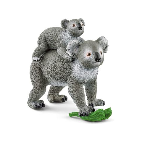 A Schleich® Wild Life koalamama és kicsinye imádnak együtt reggelizni, főleg ha finom eukaliptuszt fogyasztanak. Reggeli után a kis koala erősen kapaszkodik anyukája hátába, aki felviszi őt a fák közé.