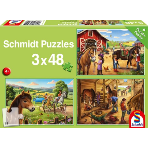 Schmidt Puzzle játék 3x 48 darabos A kedvenc lovaim puzzle, kirakós 1 kép