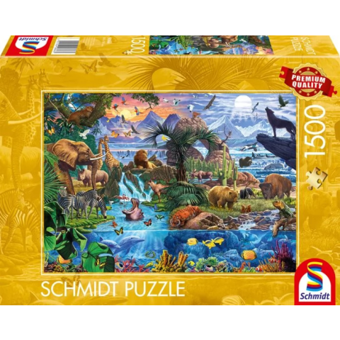 A változatos állatvilágot bemutató kirakós játék. Jellemzők: - Prémium minőség - 1500 darabos - Az elkészült kép mérete: 84.6 x 59.8 cm