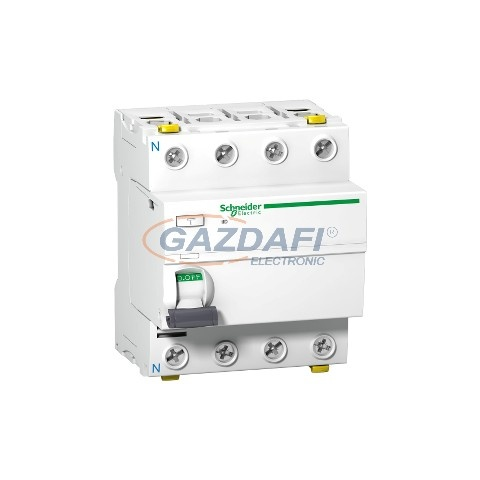 Schneider Villanyszerelői zsebkönyv 2026 ACTI9 iID áram-védőkapcsoló, A osztály, 4P, 40A, 500mASCHNEIDER A9Z26440 általános leírása:Működési elv Az áramvédő kapcsoló, más néven FI relé, egy olyan elektromos védelmi eszköz, amely az elektromos hálózatban k