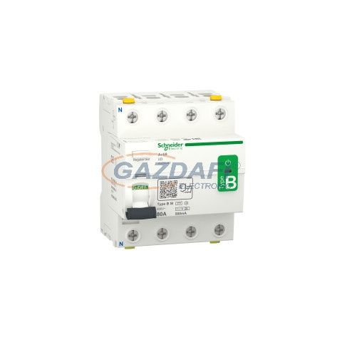 ACTI9 iID áram-védőkapcsoló, B-SI osztály, 4P, 80A, 500mASCHNEIDER A9Z66480 általános leírása:Működési elv Az áramvédő kapcsoló, más néven FI relé, egy olyan elektromos védelmi eszköz, amely az elektromos hálózatban keletkező kis értékű szivárgó áramokat