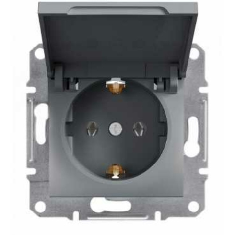 1 kép SCHNEIDER Asfora 162 dugalj földelt csapófedéllel nemesacél IP20 süllyesztett Schneider